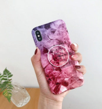 Compatible with Apple, Simple retro flower marble pattern for IPHONE with the same paragraph telescopic bracket silicone soft shell